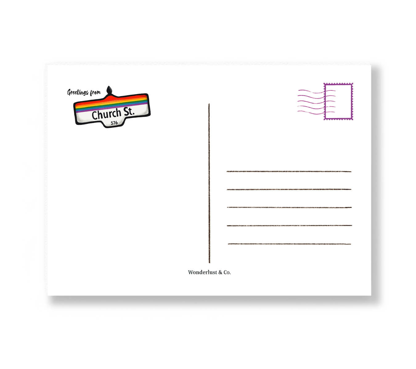 Stay connected by sending a postcard showcasing the vibrant and colourful neighbourhood of Church Street. Keep in touch and spread joy with every postcard sent.