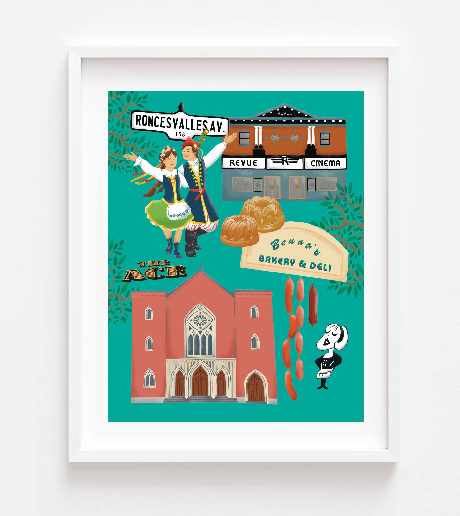 Experience the beauty of Roncesvalles with our new print! Located just west of Toronto, this design captures the vibrant and charming atmosphere of the neighbourhood. Add a touch of art and culture to your home with this unique piece.